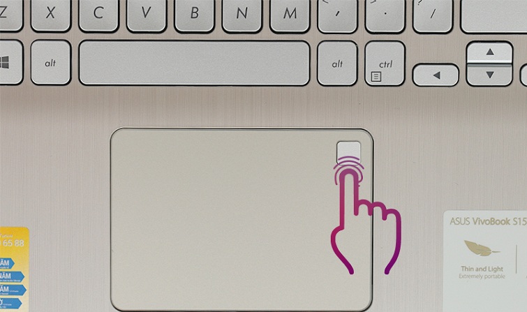 Nằm tên bề mặt của Touchpad là vị trí của cảm biến vân tay đã được tích hợp trên Asus S430FA EB044T. Bạn sẽ không phải mất nhiều thời gian để nhập mật khẩu mới có thể mở máy như xưa mà giờ đây chỉ bằng một cái chạm tay nhẹ là chiếc laptop đã lập tức được đăng nhập vào.