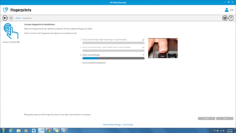 Bạn có thể tiến hành đăng ký dấu vân tay và password của mình theo các hướng dẫn cụ thể trong chương trình HP Client Security của máy.