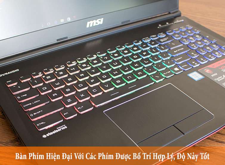 Máy tính xách tay MSI GE62VR Apache Pro sở hữu bộ bàn phím hiện đại, các phím được bố trí khoa học, khoảng cách hợp lý, độ nảy tốt tạo cảm giác gõ êm và nhẹ nhàng. Ngoài ra, bàn phím còn có đèn LED đẹp mắt, thuận tiện để làm việc vào ban đêm.