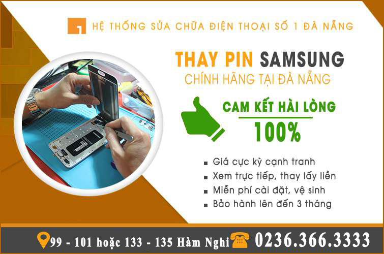 Lưu ý: Bảng giá các dịch vụ thay pin Samsung (đã bao gồm phí dịch vụ và bảo hành) này có thể thay đổi theo từng Modem và thời điểm. Hãy liên hệ qua hotline 0236.3663333 hoặc đến trực tiếp tại các cơ sở của hệ thống để được báo giá chính xác.