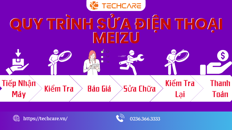 Quy trình sửa chữa điện thoại Meizu tại Techcare được thực hiện theo các bước sau: