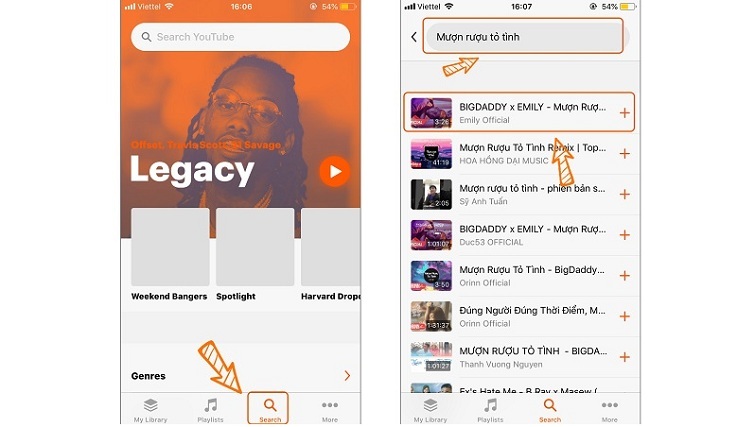 - Bước 2: Mở ứng dụng và chọn mục tìm kiếm. Nhập bài hát hoặc paste liên kết YouTube để bắt đầu. Giao diện hỗ trợ hiển thị gợi ý dựa trên lịch sử nghe, giúp khám phá nhạc mới dễ dàng.