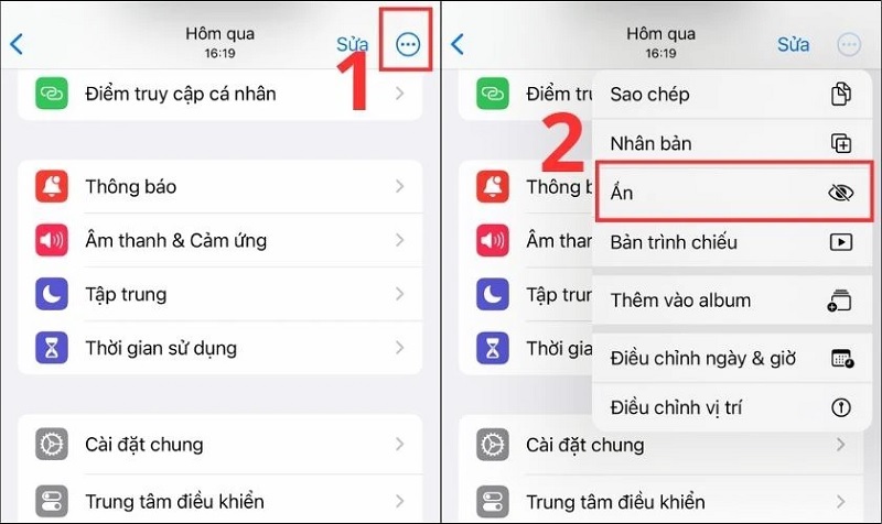 Bước 2: Tại giao diện mới hiển thị, bạn lần lượt nhấn vào mục Ẩn >> Chọn Ẩn 1 ảnh để hoàn tất.