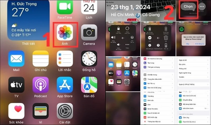 Nếu bạn muốn ẩn nhiều ảnh cùng lúc trên iPhone, bạn thực hiện như sau:
