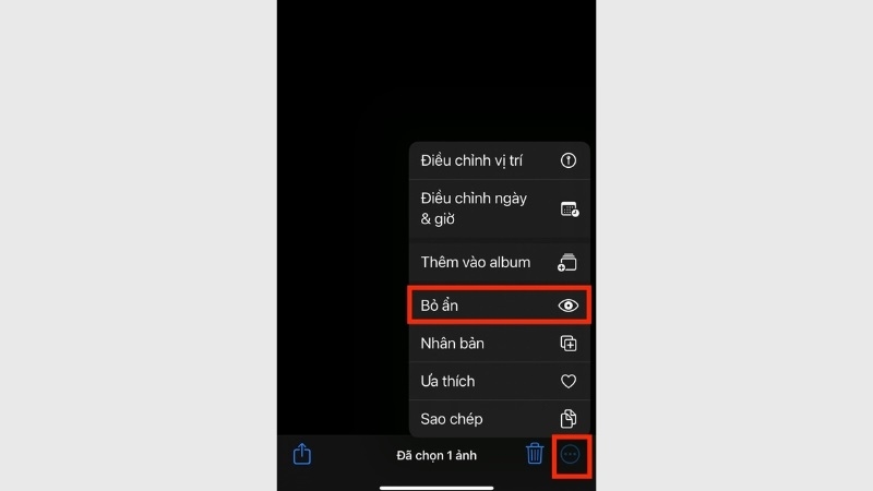 Bước 3: Chọn Ẩn > Xác nhận Ẩn ảnh