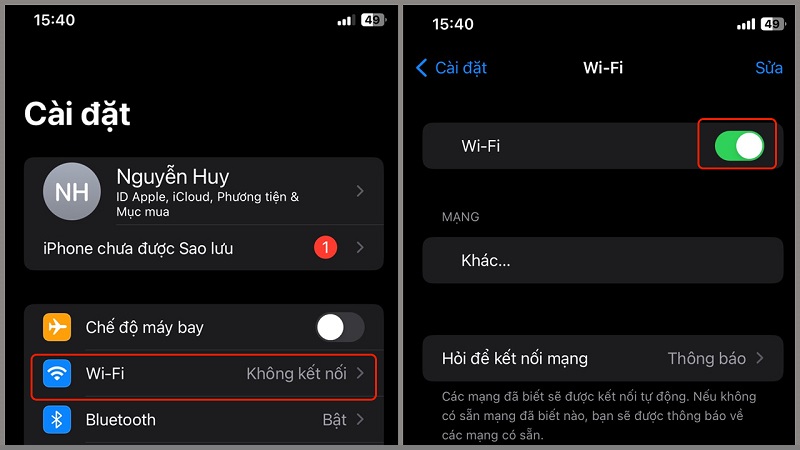 Bước 1: Vào Cài đặt → chọn Wi-Fi