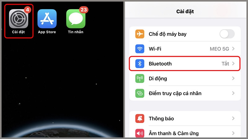 Bước 2: Trên iPhone, vào Cài đặt → Bluetooth → bật Bluetooth.