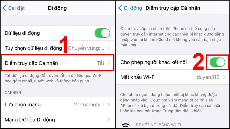 Bước 1: Vào Cài đặt → Điểm truy cập cá nhân