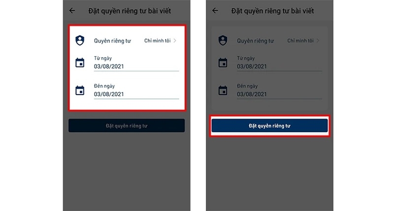 - Nhấn nút "Đặt quyền riêng tư" để bắt đầu quá trình.