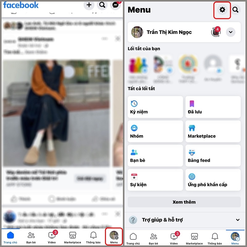 Bước 1: Mở ứng dụng Facebook trên điện thoại, nhấn vào biểu tượng 3 gạch ngang ở góc dưới bên phải màn hình (iOS) hoặc góc trên bên phải (Android).