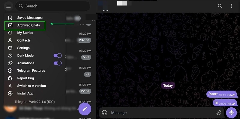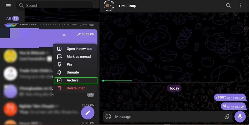 Telegram hỗ trợ ba phương thức chính để ẩn tin nhắn: