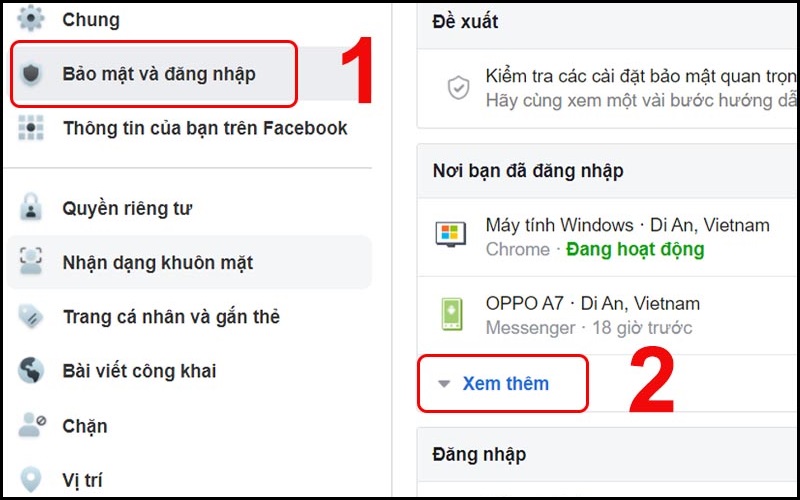Vào Cài đặt → Bảo mật và đăng nhập → Nơi bạn đã đăng nhập. Tại đây bạn xem được danh sách đầy đủ thiết bị, vị trí địa lý và thời gian đăng nhập gần nhất.