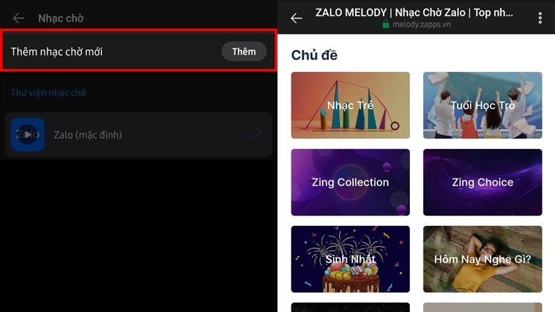 Đây là cách cài nhạc chờ Zalo đơn giản nhất, phù hợp khi bạn muốn dùng nhạc từ thư viện có sẵn của ứng dụng.
