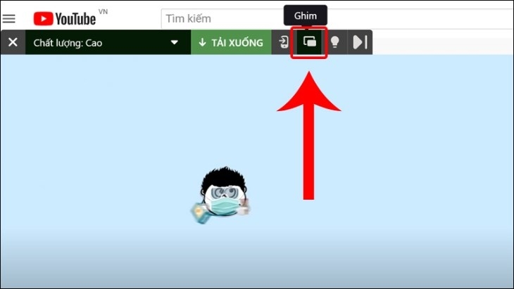 Tìm biểu tượng Ghim trên thanh công cụ của Cốc Cốc (thường nằm ở góc trên cùng). Nhấn vào để video chuyển thành cửa sổ nổi.