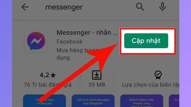 - Tìm Messenger và nhấn Cập nhật
