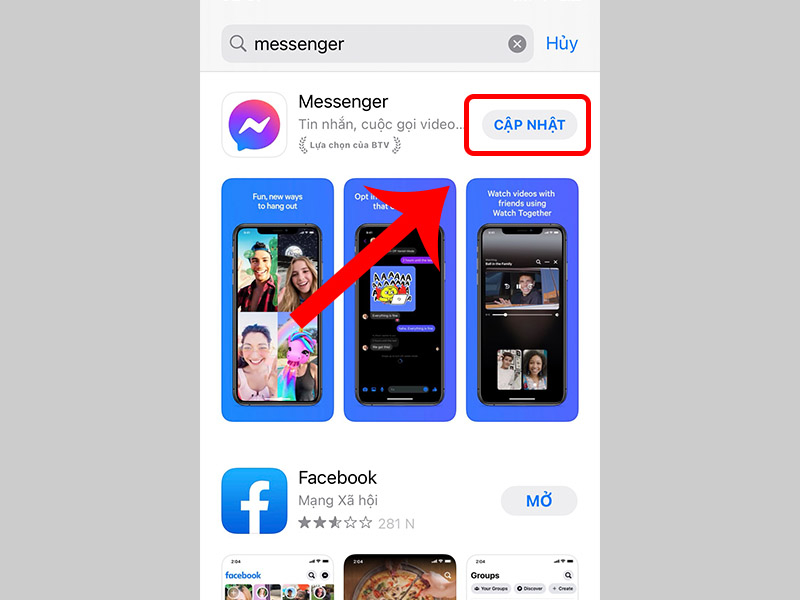Bước 2 — Cập nhật Messenger trên App Store: