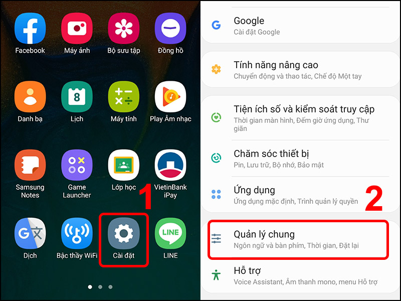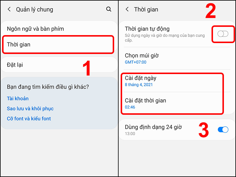 - Mở Cài đặt → Quản lý chung → Thời gian