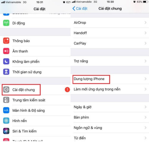 - Vào Cài đặt > Cài đặt chung > Dung lượng iPhone (hoặc iPad).