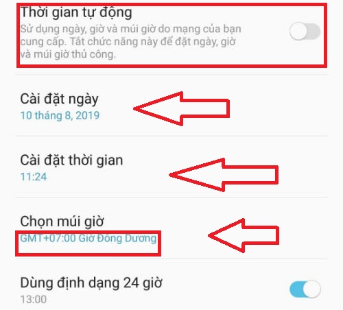 - Tắt tùy chọn "Sử dụng thời gian do mạng cung cấp"
