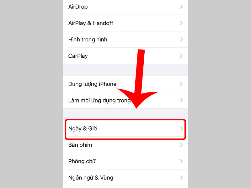 - Vào Cài đặt → Cài đặt chung → Ngày và giờ