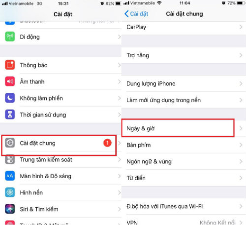 - Vào Cài đặt > Cài đặt chung > Ngày và giờ