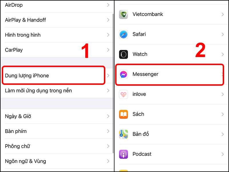 - Vào Cài đặt → Cài đặt chung → Dung lượng iPhone