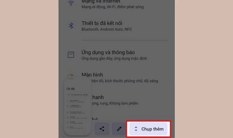 Bước 2: Tại hình ảnh vừa được chụp ảnh màn hình, bạn hãy chọn vào nút Chụp thêm nằm ở góc dưới bên phải màn hình. Sau đó, bạn cuộn màn hình xuống phía dưới cho đến vị trí bạn cần chụp màn hình.
