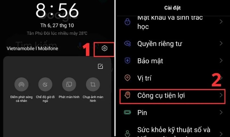 Bước 1: Bạn mở ứng dụng Cài đặt lên trên điện thoại. Tiếp theo, bạn chọn vào mục Công cụ tiện lợi như hình bên dưới: