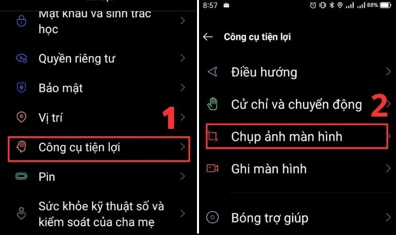 Bước 2: Tiếp theo, bạn cuộn màn hình xuống để tìm kiếm và chọn vào Công cụ tiện lợi. Sau đó, bạn chọn vào tính năng Chụp màn hình.