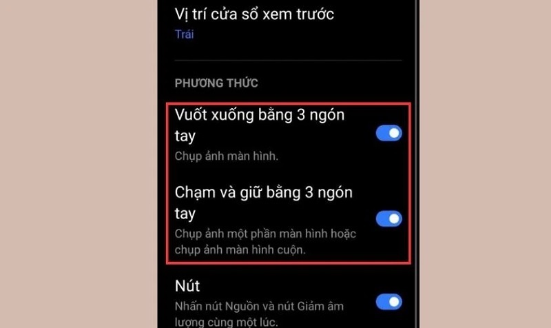 - Vuốt xuống bằng 3 ngón tay: Chụp ảnh màn hình điện thoại