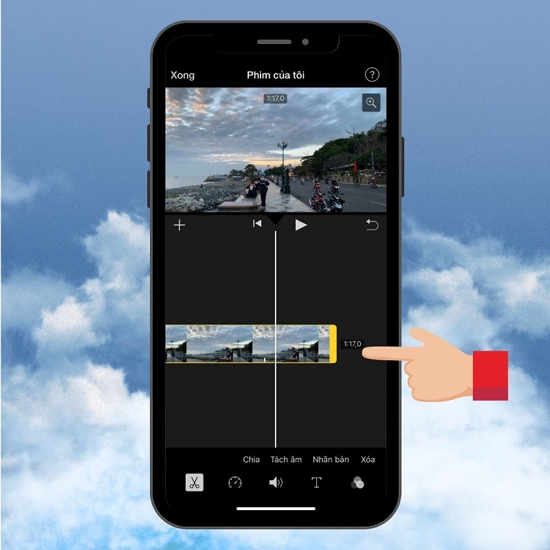 Bước 7: Sau khi đã thực hiện hoàn tất các thao tác trên, bạn xem trước video để xem đã hài lòng hay chưa. Nhấn nút Xong >> Nhấn vào biểu tượng Chia sẻ.