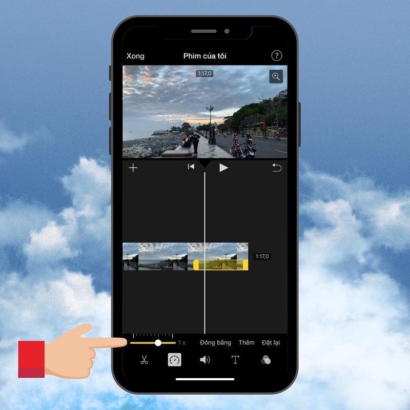 Bước 5: Lúc này, bạn chọn dòng thời gian của video rồi chọn vào biểu tượng tốc độ.