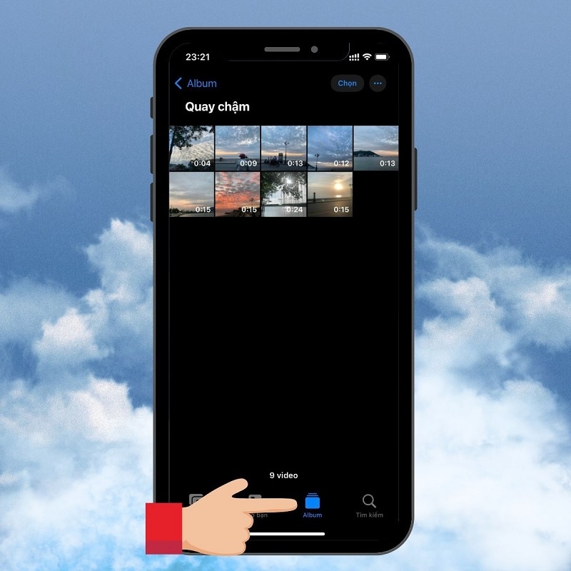 Bước 1: Bạn vào thư viện Ảnh trên điện thoại. Sau đó, lần lượt chọn vào Album >> Chọn Quay chậm như hình bên dưới: