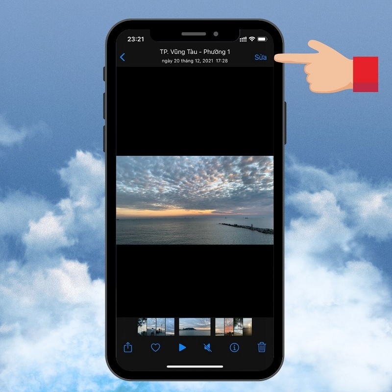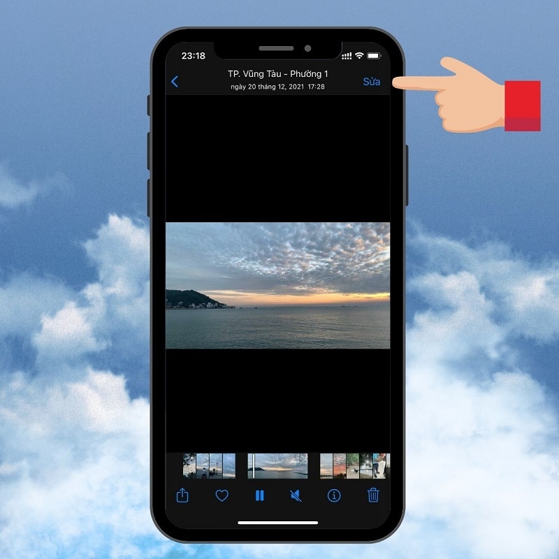 Bước 3: Tiếp theo, bạn chạm vào video để video được hiển thị ở chế độ toàn màn hình. Nhấn vào nút Sửa nằm ở góc trên bên phải màn hình để tiếp tục.