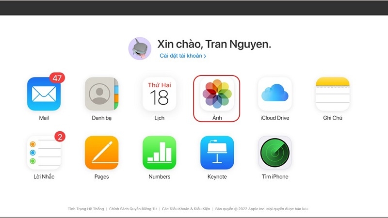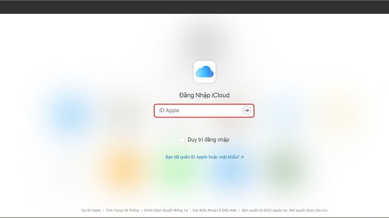 Bước 1: Truy cập icloud.com trên máy tính, đăng nhập tài khoản Apple ID.