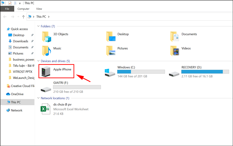Bước 3: Trong mục "This PC" hoặc "Portable Devices", tìm tên iPhone của bạn.