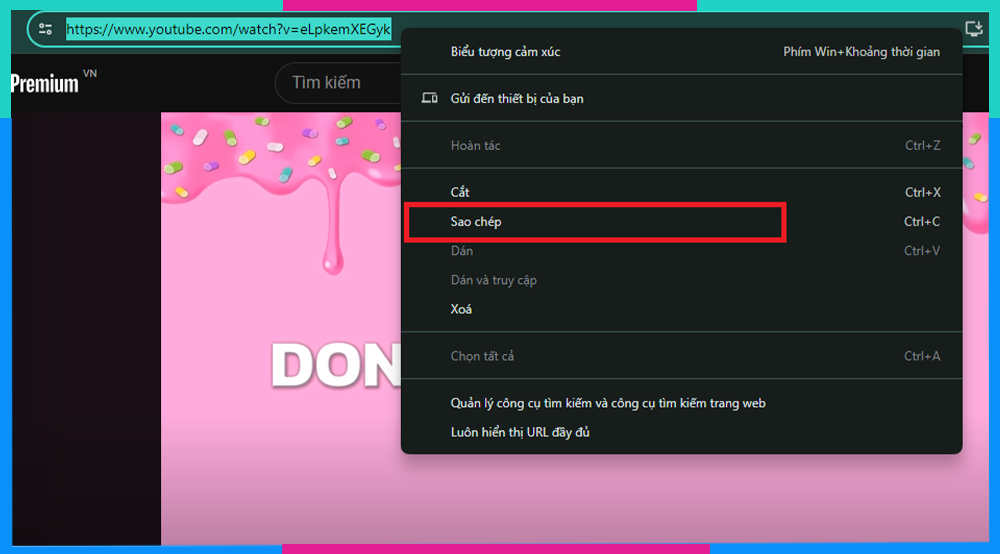- Chọn "Copy video URL" từ menu xuất hiện