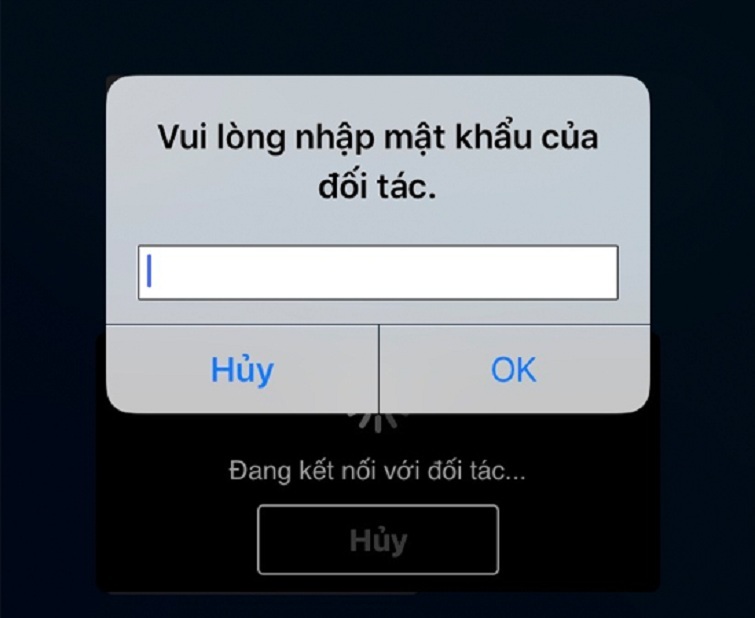 Bước 3: Tại giao diện trên điện thoại iPhone, bạn nhập vào địa chỉ ID cùng với mật khẩu hiển thị trên laptop vào.