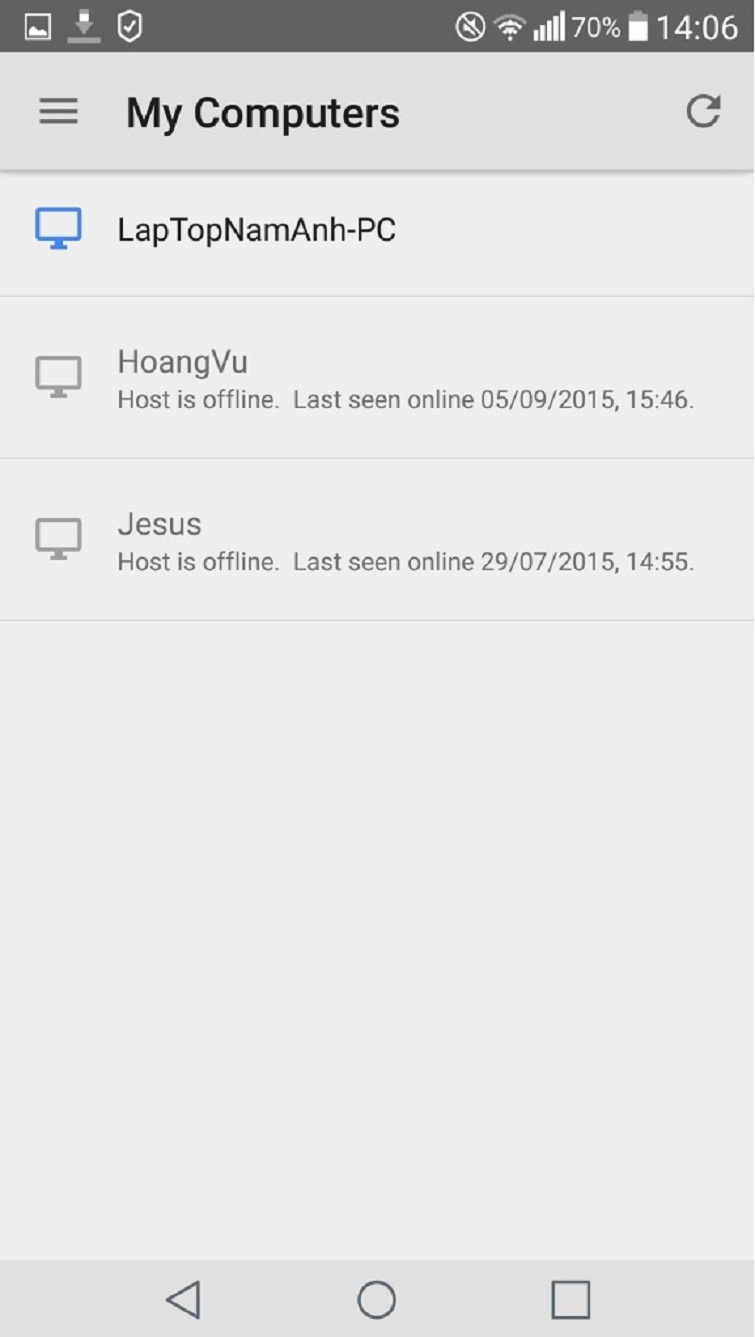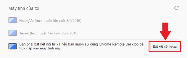 Tại đây, những chiếc laptop đang chia sẻ Chrome Remote Desktop hay những laptop mà bạn đã từng kết nối sẽ được hiển thị ra.