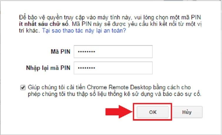 Lúc này sẽ có một cửa sổ hiện ra và yêu cầu bạn nhập mã PIN vào (ít nhất là 6 chữ số), bạn tiến hành nhập mã bất kỳ rồi chọn OK.