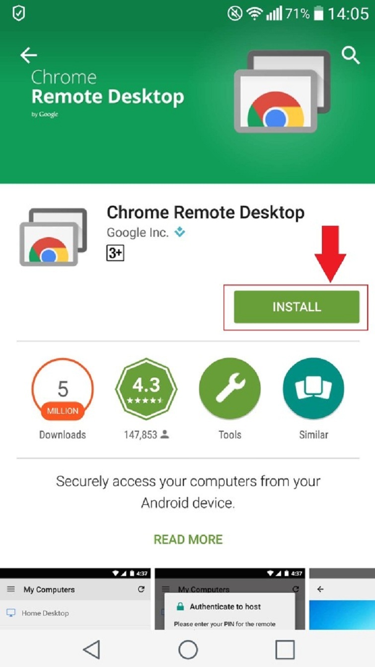 Tương tự như trên, bạn cũng tải về điện thoại một ứng dụng có tên là Chrome Remote Desktop ở trên Google Play.