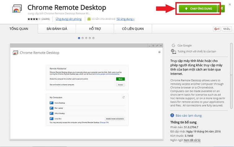 Sau khi đã cài đặt hoàn tất, bạn mở lên ứng dụng Chrome Remote Desktop vừa được tải về.