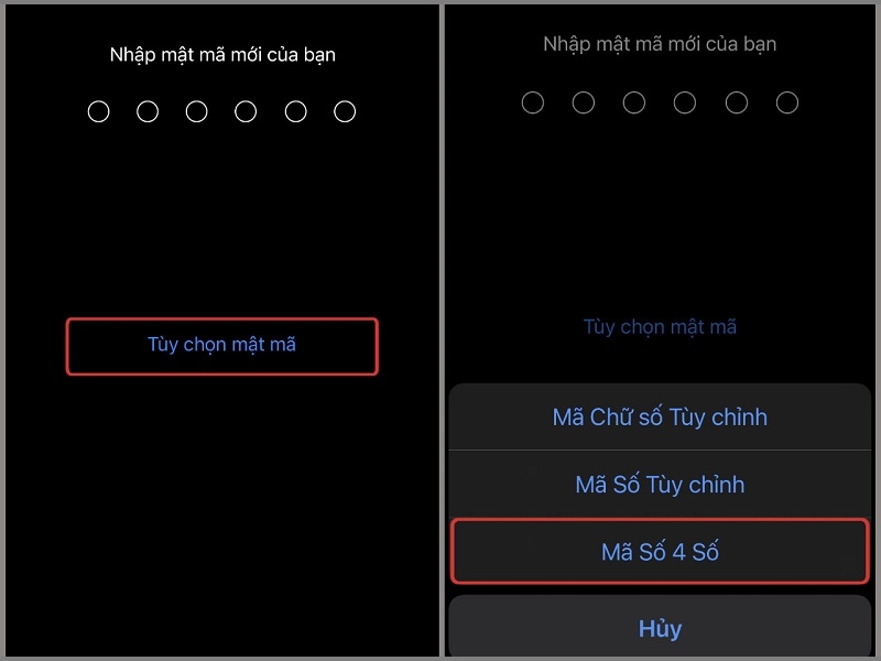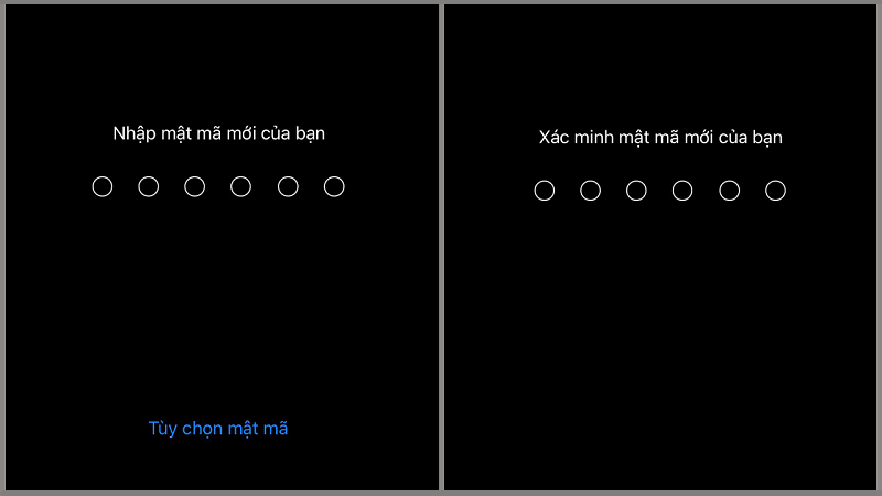 Lưu ý: Nếu bạn muốn sử dụng mật khẩu phức tạp hơn (kết hợp chữ và số), hãy chọn Tùy chọn mật mã (Passcode Options) khi được yêu cầu nhập mật mã mới.