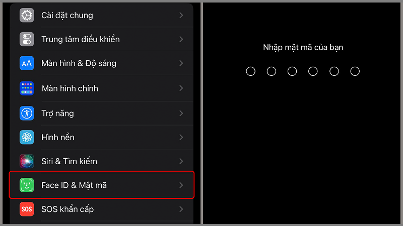 Bước 2: Chọn Face ID & Mật mã (hoặc Touch ID & Mật mã với iPhone đời cũ).