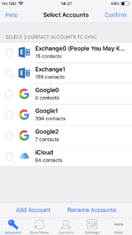 Một trong những ứng dụng bên thứ ba phổ biến là Contact Mover và Account Sync. Ứng dụng này không chỉ hỗ trợ đồng bộ hóa giữa iCloud và Gmail mà còn cho phép bạn đồng bộ danh bạ từ các tài khoản khác như Facebook, Outlook, CardDAV, và thậm chí là từ bộ nhớ trong thiết bị iPhone của bạn.