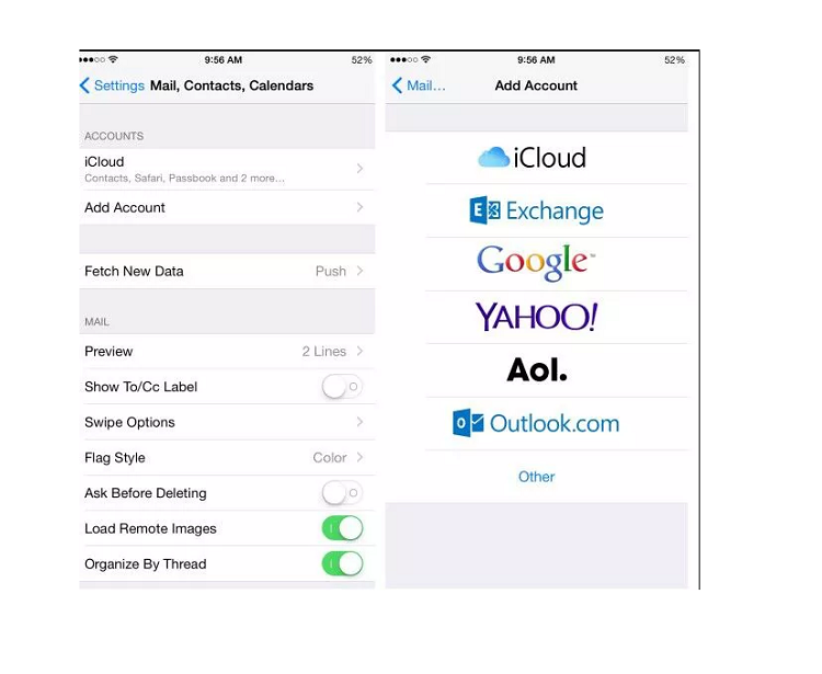 1. Dành cho iOS 10.3 trở về trước. Truy cập vào Cài đặt và sau đó tiếp tục bằng cách nhấn vào tùy chọn Mail, Contacts, Calendar.