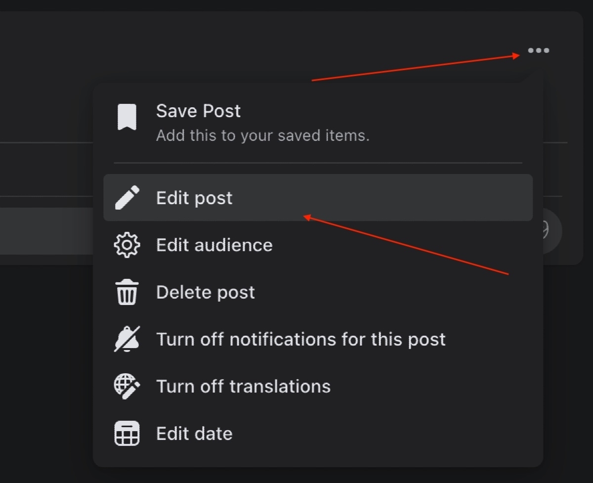 Lưu ý: Phương pháp này chỉ áp dụng được cho bài đăng của chính bạn. Nếu bài đăng đã được chia sẻ nhiều lần, việc chỉnh sửa có thể ảnh hưởng đến độ tương tác.