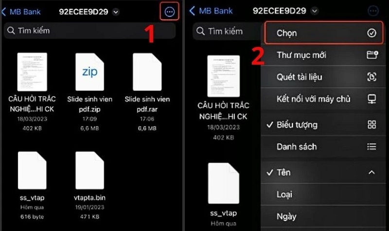 Sau khi chọn file ZIP, nhấn vào biểu tượng ba chấm ở góc trên bên phải màn hình.