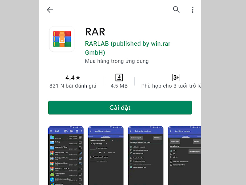 Hầu hết các thiết bị Android như Samsung, Oppo, Xiaomi, hay Vivo không được tích hợp sẵn ứng dụng giải nén file. Để thực hiện, bạn cần tải một ứng dụng hỗ trợ giải nén chuyên dụng. Một trong những ứng dụng phổ biến và đáng tin cậy nhất là RAR for Android, được phát triển bởi RARLAB, đội ngũ đứng sau phần mềm WinRAR nổi tiếng.