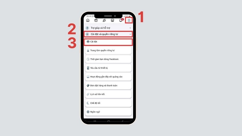 Bước 2: Trong menu này, chọn mục "Cài đặt và quyền riêng tư".